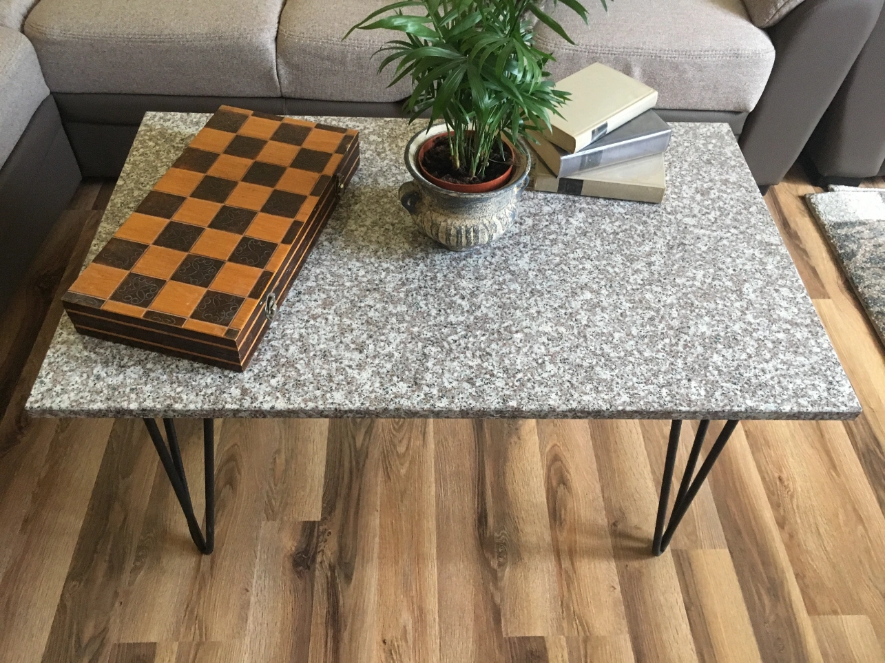 Dizájnos gránit asztal gránit illetve hajtű lábakkal